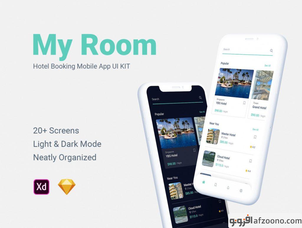 دانلود طرح لایه باز رابط کاربری اپلیکیشن رزواسیون هتل My Room – Hotel Booking Mobile App UI KIT
