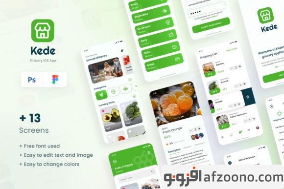 دانلود طرح لایه باز رابط کاربری اپلیکیشن میوه و سبزی Kede – Grocery iOS App Design UI Template