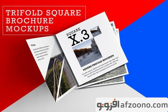 دانلود مجموعه ماک آپ بروشور Trifold Square Brochure Mockups