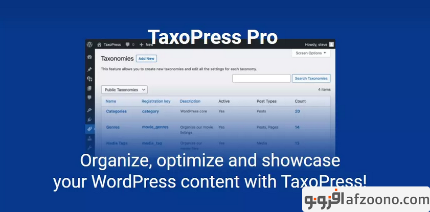 دانلود افزونه TaxoPress Pro برای وردپرس تاکسو پرس افزونه مدیریت طبقه بندی و تاکسونومی ها، مدیریت و بهینه سازی نمایش محتوا در وردپرس