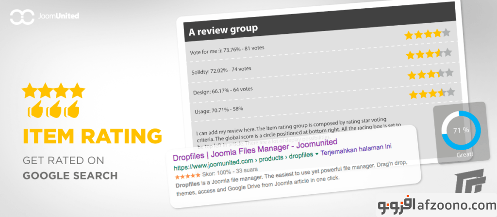 دانلود اکستنشن Item Rating Pro برای جوملا آیتم ریتینگ پرو افزونه نقد و بررسی و امتیاز دهی به محتوا در جوملا Rating and Reviews Extension for Joomla